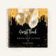 A stylish black background with faux gold glitter drips. Decorated with balloons. Personalise and add your names and the wedding date.