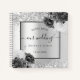 Faux silver looking background decorated with florals, flowers, and confetti. Personalise and your names and the wedding date.