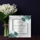 Faux silver looking background decorated with green florals, flowers, and faux silver glitter, sparkles. Personalise and your names and the wedding date.