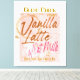 Guest Check Receipt Vanilla Latte Coffee Oat Milk Canvas Print