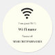 A Wi-Fi symbol. Add your wi-fi name and password for your customers/guests. Ivory background, black text.
