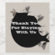 This promotional appreciation wine bottle label features a torn and ripped paper design in light grey with "Thank You For Staying With Us" peeking out from underneath. The centre is black with the text in pale grey. Text and black background colour can easily be customised if you desire.
