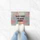 This unique front door mat features an elegant background of abstract pastel colours of teal and rose. Whether you wish to welcome people to your own residence or you rent out your home or a room to guests, welcome them with this beautiful floral pattern. "Welcome to our home" can quickly and easily be customised to suit your needs.