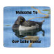 Add a unique touch to your lake house with this beautiful cutting board featuring a photo of a black and white duck with his beak tucked into his feathers and his eye open observing the world. "Welcome to our lake house" is featured along with this lake animal and can quickly be customised to suit your needs.