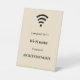 A Wi-Fi symbol. Add your wi-fi name and password for your guests. A soft, modern beige, cream coloured background.