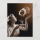 A woman having tea and then a guinea pig magically appears floating in the air in a vintage style of photography.