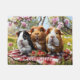 This delightful door mat features an adorable scene of three guinea pigs having a picnic on a checkered blanket on a sunny day. On the blanket, there is a bowl of strawberries for the guinea pigs to enjoy, whilst around them cherry blossom petals fall from the blossoming trees. The vibrant backdrop of blooming flowers and lush green grass adds a touch of whimsy and joy, making this bath mat a charming and cheerful addition to brighten up any guinea pig lover's property entrance. generativecontent