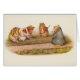 Four Guinea pigs sing a song (printed inside the card) while using rakes and hoes to care for their garden. Vintage illustration from Cecily Parsley's Nursery Rhymes with a handful of classic fairy tales illustrated by Beatrix Potter.