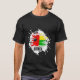 I give wanted to give this a 4 instead of a 5 because these Basic DARK T0shirts run unexpectedly SLIM or Narrow. Which is great if you do not have a potbelly, but I have a paunch. It isn't the shirt's fault that I've got a beer belly. The design and shirt itself is a quality cotton shirt. The color is more of a deep purple, but still a very pretty color. The Basic DARK T-shirts run a bit SLIMMER than the Basic Ts. The neck is a fraction narrower (or seems to be narrower) also. I'm a paunchy middle-aged woman and my neck is 12 inches (31cm) thick and the neckline fell about the same as in the photo of the man, and I had the desire to tug it a bit. So if you're a thick necked man or like loose shirts, be aware these are slimmer shirts. Once I get rid of my lockdown paunch it'll look great. The shirt washed well in cold water with no apparent bleeding. We don't have a dryer, so it hung dry. Did not shrink. Love the colors and the design. The design looks smaller on my shirt than it does on the model on-line. But still, it looks good on the shirt. The printing looks as it does on the model, just the size seems fractionally smaller. Washed garment in cold water, hung dry and design appeared unaffected.