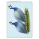 Slate guineas show no polka dots at all on their feathers, being a soft bluish grey, darkening towards the neck and head.