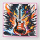 A striking guitar surrounded by vibrant flames, radiating energy and passion, captures the spirit of music in a dazzling explosion of colour.
