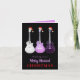 Christmas just got cool and musical with this guitar music lovers personalised merry musical Christmas modern typography festive card. Three modern pop art pink purple grey style semi acoustic guitars wearing santa hats completes this fun unique hand drawn design. Unique original artwork by artist Catherine Sweetman