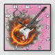Guitar engulfed in vibrant flames and music notes square wall clock