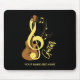 Cool design ideal for musicians, guitar players and music businesses with a guitar and swirls of music around it. Customise with your personal or business name or clear if not required.