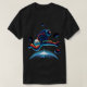 I give wanted to give this a 4 instead of a 5 because these Basic DARK T0shirts run unexpectedly SLIM or Narrow. Which is great if you do not have a potbelly, but I have a paunch. It isn't the shirt's fault that I've got a beer belly. The design and shirt itself is a quality cotton shirt. The color is more of a deep purple, but still a very pretty color. The Basic DARK T-shirts run a bit SLIMMER than the Basic Ts. The neck is a fraction narrower (or seems to be narrower) also. I'm a paunchy middle-aged woman and my neck is 12 inches (31cm) thick and the neckline fell about the same as in the photo of the man, and I had the desire to tug it a bit. So if you're a thick necked man or like loose shirts, be aware these are slimmer shirts. Once I get rid of my lockdown paunch it'll look great. The shirt washed well in cold water with no apparent bleeding. We don't have a dryer, so it hung dry. Did not shrink. Love the colors and the design. The design looks smaller on my shirt than it does on the model on-line. But still, it looks good on the shirt. The printing looks as it does on the model, just the size seems fractionally smaller. Washed garment in cold water, hung dry and design appeared unaffected.