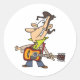 A man looking like a rockstar with a guitar and wearing rockstar clothes. This design looks really effective on these Stickers