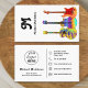 Guitar music teacher musicians business card with custom logo template and contact social media icon and details perfect for business networking. Psychedelic acoustic guitar, semi acoustic guitar and electric guitar in bright colours on a white background complete with personalised monogram, name, details and your logo in cool retro groovy typography. Cool colourful musicians business card design for guitarists, professional musicians, entertainers and music teachers. Original artwork by artist Catherine Sweetman
