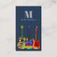 Guitar music teacher business card with photo template and modern typography. Colourful psychedelic guitar illustrations on a blue background complete with personalised monogram, name, details and photo template. The perfect cool business card design for guitarists, professional musicians, entertainers, songwriters and music teachers. Original artwork by artist Catherine Sweetman