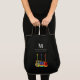 Make a lasting impression with this modern funky psychedelic Guitar Music Teacher Website QR Code Business tote designed for guitar tutors, guitarists, musicians, music teachers, and entertainers who want to stand out. This vibrant template features psychedelic pop art acoustic guitar, semi-acoustic guitar, and electric guitars in bold colours against a sleek black background. Personalise it with your monogram, name, contact details, and easily integrate your website QR code to enhance your networking efforts.