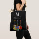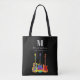 Make a lasting impression with this modern funky psychedelic Guitar Music Teacher Website QR Code Business tote designed for guitar tutors, guitarists, musicians, music teachers, and entertainers who want to stand out. This vibrant template features psychedelic pop art acoustic guitar, semi-acoustic guitar, and electric guitars in bold colours against a sleek black background. Personalise it with your monogram, name, contact details, and easily integrate your website QR code to enhance your networking efforts.