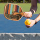 I hope you enjoy this great Carbon Fibre Pickleball Paddle with this Guitar Painting with a Striped Background on it. Enjoy!