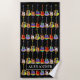 Electric guitars, acoustic guitars and semi acoustic guitars pattern in funky psychedelic colours with personalised name monogram beach towel on a black background. Fully customisable using the monogram name template. Any guitarist or musician will tell you that you can never have to many guitars. This fun colourful guitar design celebrates the energy and variety of this wonderful musical instrument. The perfect gift for guitarists, musicians and music lovers. Psychedelic guitar pop art original artwork by artist Catherine Sweetman