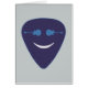 A music-themed graphic design of a guitar-pick with guitar eyes and a smile...