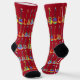 Rock around the Christmas tree for guitar players dads with these bold and festive socks featuring a colourful pattern of acoustic and electric guitars wearing Santa hats. Illustrated in vibrant psychedelic shades of red, blue, yellow, and green, this playful design makes a perfect holiday gift for guitarists, musicians, and music lovers.