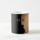 Cool tan wood and black guitar silhouette mug. Personalize the name and monogram initial. Great gift for music lovers.