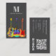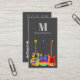 Guitar music teacher musicians grey business card with website QR code template and contact social media icon and details perfect for business networking. Psychedelic acoustic guitar, semi acoustic guitar and electric guitar in bright colours on a grey background complete with personalised monogram, name, details and your website QR code. Cool modern musicians business card design for guitarists, professional musicians, entertainers and music teachers. Original artwork by artist Catherine Sweetman