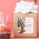 The size is perfect and the design has a softness with the beautiful flowers around the edges. The black lettering on the white background is sharp. It stands out beautifully. I love the Mixture of font styles as it catches the eye.