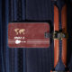Add your own band name or guitarist name to the template to create a modern reddish design, with graphic image of a guitar and world map... to easily identify your music baggage.