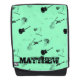 Repeating pattern with black illustrations of guitars on pale green background with name (black + light colour to create drop shadow) on customisable backpack. You can easily change size and position of the design and change text(font, colour, size and position) by clicking the customise button. Available with black design on white, yellow background. Matching shoes, tie, Iphone case...