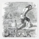 Gulliver stealing the Blefuscudian fleet, illustration from 'Gullivers Travels' by Jonathan Swift, 1838 | by Grandville | Art Location: Private Collection | French Artist | Image Collection Number: XJF380278