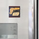 This wood gun has the humourous saying 'we don't call 911' , with a wood grain background all displayed in brown earth tones that highlight the quote. Cute patriotism for kitchen and entry way magnets.