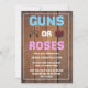 Unveil your little one’s gender with a twist of western charm! Our "Guns or Roses Gender Reveal Invitation" perfectly captures the excitement of a cowboy or cowgirl reveal. This vibrant design is ideal for your Country Gender Reveal Party, complete with cowriders and girls' hairbows. Whether you’re team blue or team pink, our invitations set the stage for a memorable celebration. Perfect for vaqueros and vaqueras, our Guns or Glitter Gender Reveal theme adds sparkle and fun. Order now and make your event unforgettable!