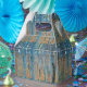 This is based on classic nature painting artworks by Gustav Klimt, Beech Grove 1, 1902. The artwork portrays a dense forest of tall, slender birch trees, with pale trunks marked by dark, vertical lines. The foliage is depicted in shades of blue, green, and yellow, adding a sense of depth and vibrancy to the scene. The forest floor is covered in a layer of orange and brown leaves, creating a striking contrast with the lighter tree trunks. The overall composition uses pointillist and impressionistic techniques, giving the image a lively, textured appearance. The verticality of the trees emphasises the serene and rhythmic structure of the forest.