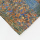 This is based on classic nature painting artworks by Gustav Klimt, Beech Grove 1, 1902. The artwork portrays a dense forest of tall, slender birch trees, with pale trunks marked by dark, vertical lines. The foliage is depicted in shades of blue, green, and yellow, adding a sense of depth and vibrancy to the scene. The forest floor is covered in a layer of orange and brown leaves, creating a striking contrast with the lighter tree trunks. The overall composition uses pointillist and impressionistic techniques, giving the image a lively, textured appearance. The verticality of the trees emphasises the serene and rhythmic structure of the forest.