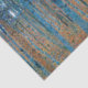 This is based on classic nature painting artworks by Gustav Klimt, Beech Grove 1, 1902. The artwork portrays a dense forest of tall, slender birch trees, with pale trunks marked by dark, vertical lines. The foliage is depicted in shades of blue, green, and yellow, adding a sense of depth and vibrancy to the scene. The forest floor is covered in a layer of orange and brown leaves, creating a striking contrast with the lighter tree trunks. The overall composition uses pointillist and impressionistic techniques, giving the image a lively, textured appearance. The verticality of the trees emphasises the serene and rhythmic structure of the forest.