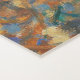 This is based on classic nature painting artworks by Gustav Klimt, Beech Grove 1, 1902. The artwork portrays a dense forest of tall, slender birch trees, with pale trunks marked by dark, vertical lines. The foliage is depicted in shades of blue, green, and yellow, adding a sense of depth and vibrancy to the scene. The forest floor is covered in a layer of orange and brown leaves, creating a striking contrast with the lighter tree trunks. The overall composition uses pointillist and impressionistic techniques, giving the image a lively, textured appearance. The verticality of the trees emphasises the serene and rhythmic structure of the forest.