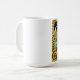 Gustav Klimt Expectation mug. Watercolor on paper from 1909. Completed during Klimt’s golden phase, Expectation is a beautiful watercolor very reminiscent of the artist’s more famous painting Tree of Life. A woman wearing a quilted dress with triangles of bronze, purple, blue and green stands in front of a pattern of intricate spirals. A great gift for fans of Gustav Klimt, allegorical painting, Austrian symbolism, and art nouveau.