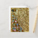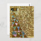 Gustav Klimt Expectation postcard. Watercolor on paper from 1909. Completed during Klimt’s golden phase, Expectation is a beautiful watercolor very reminiscent of the artist’s more famous painting Tree of Life. A woman wearing a quilted dress with triangles of bronze, purple, blue and green stands in front of a pattern of intricate spirals. A great gift for fans of Gustav Klimt, allegorical painting, Austrian symbolism, and art nouveau.