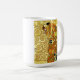Gustav Klimt Fulfilment mug. Frieze from 1909. Completed during Klimt’s golden phase, Fulfilment features an embracing couple holding each other beneath a multi-patterned quilt featuring spirals, eyes, birds, fish and other shapes. The background of the work features the same bronze spirals that would adorn the artist’s renowned Tree of Life. A great gift for fans of Gustav Klimt, Austrian symbolism, allegorical painting, and art nouveau.