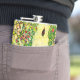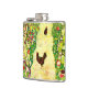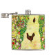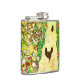 Flask featuring Gustav Klimt’s oil painting Garden with Roosters (1917). Two brown chickens stand on a garden path. Beautiful pink, red, and white flowers bloom along the path. A great gift for fans of Art Nouveau and Austrian art.