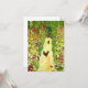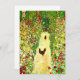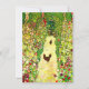 Card featuring Gustav Klimt’s oil painting Garden with Roosters (1917). Two brown chickens stand on a garden path. Beautiful pink, red, and white flowers bloom along the path. A great gift for fans of Art Nouveau and Austrian art.