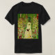 T-Shirt featuring Gustav Klimt’s oil painting Garden with Roosters (1917). Two brown chickens stand on a garden path. Beautiful pink, red, and white flowers bloom along the path. A great gift for fans of Art Nouveau and Austrian art.