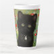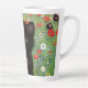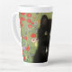 Latte Mug featuring a Gustav Klimt kitten! This black kitty wears a silver collar and sits in a field of red, blue, white, and yellow flowers. A wonderful gift for cat lovers and Austrian art enthusiasts!