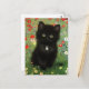 Postcard featuring a Gustav Klimt kitten! This black kitty wears a silver collar and sits in a field of red, blue, white, and yellow flowers. A wonderful gift for cat lovers and Austrian art enthusiasts!
