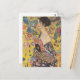 Gustav Klimt Lady With Fan postcard. Oil painting on canvas from 1918. This is a fine late portrait from Gustav Klimt exhibiting his interest in Japonism. A great gift for fans of art nouveau, Gustav Klimt, and colourful symbolist painting.