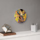 Clock featuring Gustav Klimt’s oil painting Lady with Fan (1918). A woman wearing a blue kimono holds a red fan against a colourful yellow background of flowers and peacocks. A great gift for fans of Japonisme and European art.